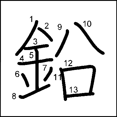 鉛の書き順・筆順 漢字 2022.08.18 鉛の書き順をまとめました。 スポンサーリンク 目次 鉛の書き順・筆順鉛の書き順鉛の読み方・画数・部首 鉛の書き順・筆順 鉛の書き順 鉛の読み方・画数・部首 文字 鉛 読み方 ・エン・なまり 部首 金 画数 13