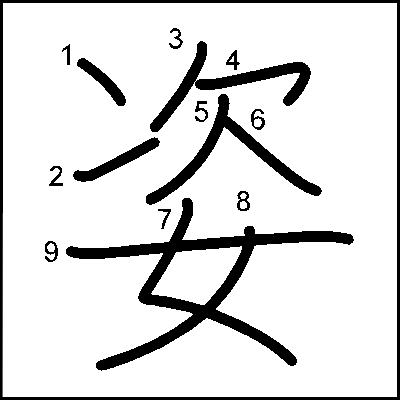 姿の書き順・筆順 姿の書き順をまとめました。 目次 姿の書き順・筆順姿の書き順姿の読み方・画数・部首 姿の書き順・筆順 姿の書き順 姿の読み方・画数・部首 文字 姿 読み方 ・シ・すがた 部首 女 画数 9