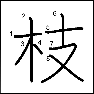 枝の書き順・筆順 枝の書き順をまとめました。 目次 枝の書き順・筆順枝の書き順枝の読み方・画数・部首 枝の書き順・筆順 枝の書き順 枝の読み方・画数・部首 文字 枝 読み方 ・シ・えだ 部首 木 画数 8